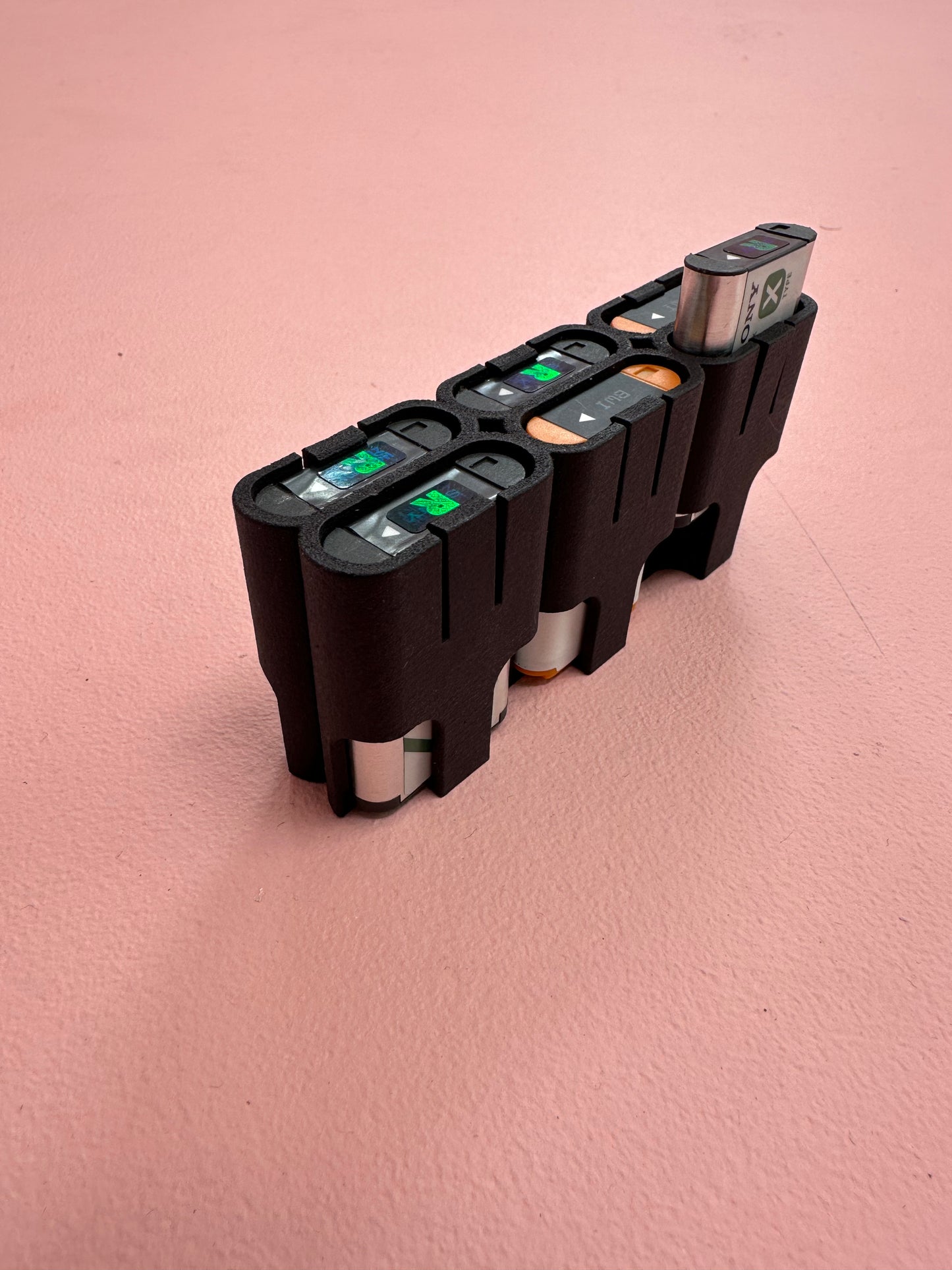 Battery Holder Caddy that perfectly fits 6x Sony NP-BX1 card batteries (also fits a range of off brand batteries).